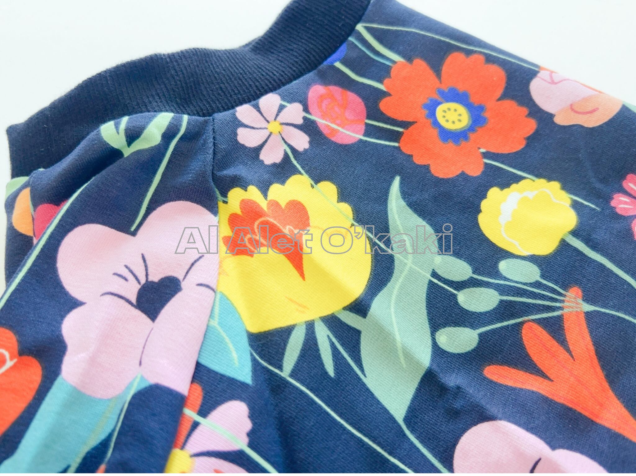 イギリス輸入スウェット生地 ラグラン袖T 黒にお花柄