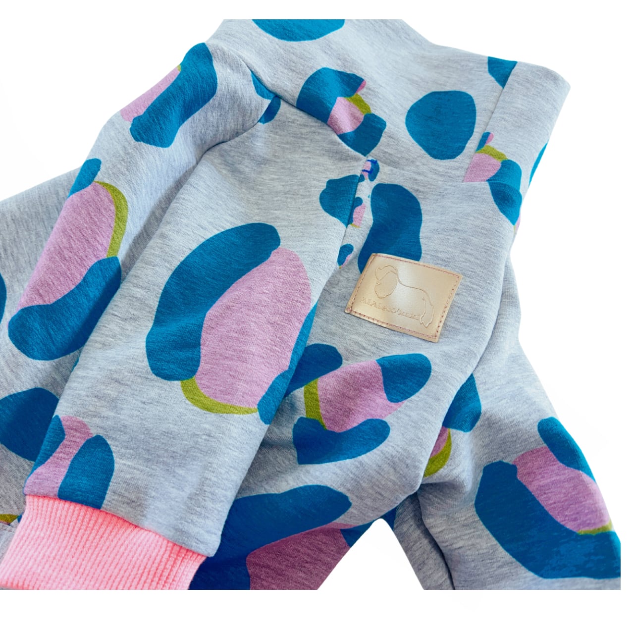 トレンド感満載の「トレーナー生地ヒョウ柄ロンパース」は、ユニークなヒョウ柄デザインが魅力的です!柔らかなトレーナー生地を使用しており、しっかりした質感です。