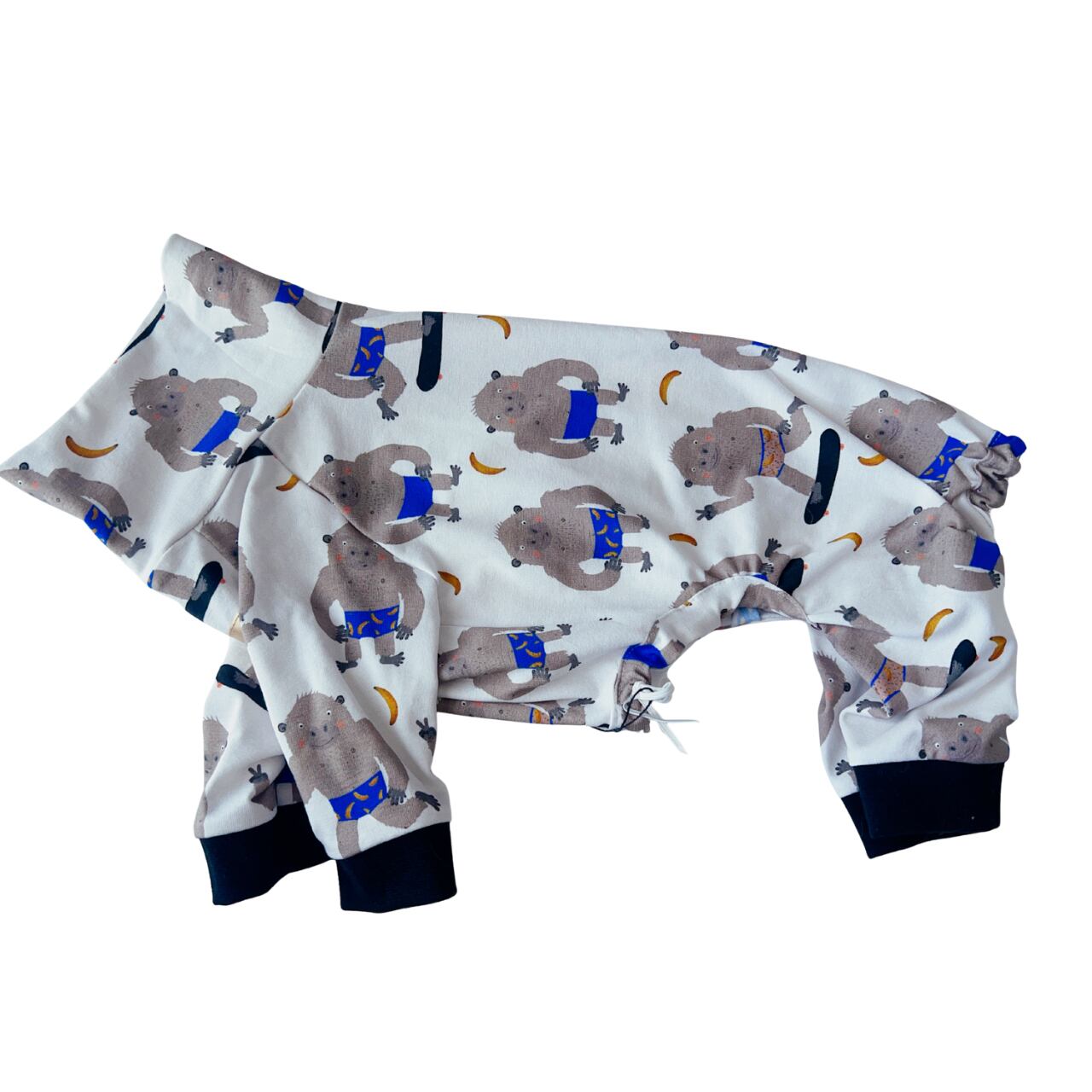 可愛らしいスケボー怪獣デザインが個性を引き立てます。ワンコが快適に過ごせるよう、柔らかく、やさしい肌触りのオーガニックコットンを採用しています。このロンパースは、普段使いやお出かけに最適なアイテムです。
